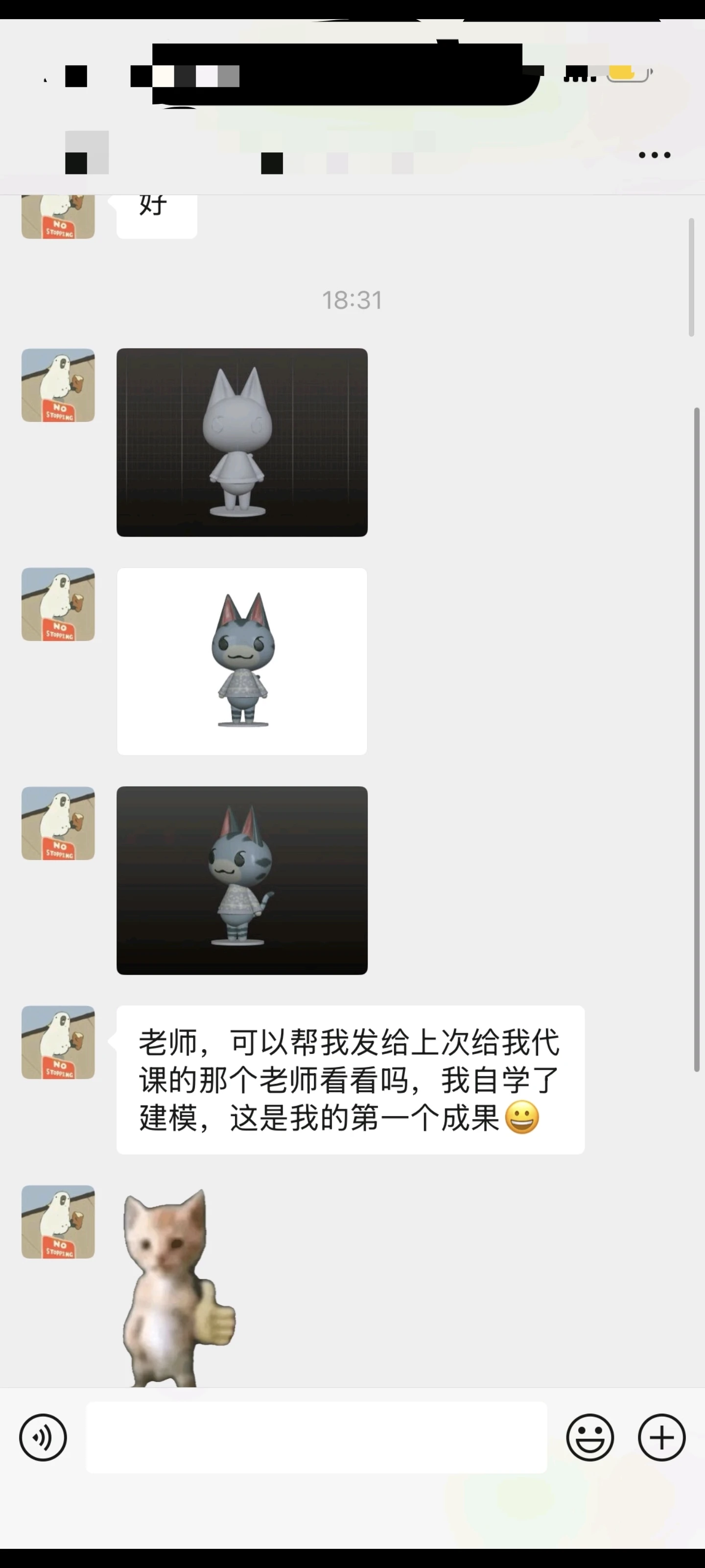 之前给她代上编程课,她问我“老师,建模该怎么开始学?”简单指点了哈。今天收到她给她老师发来的消息——她的第一个完整建模作品,那一刻,所有的疲惫都化为欣慰。教育的美好,莫过于见证成长的发生❤️