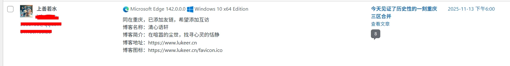 今天晚上打开博客的时候了,在文章中看到了一条上善若水的老哥评论: