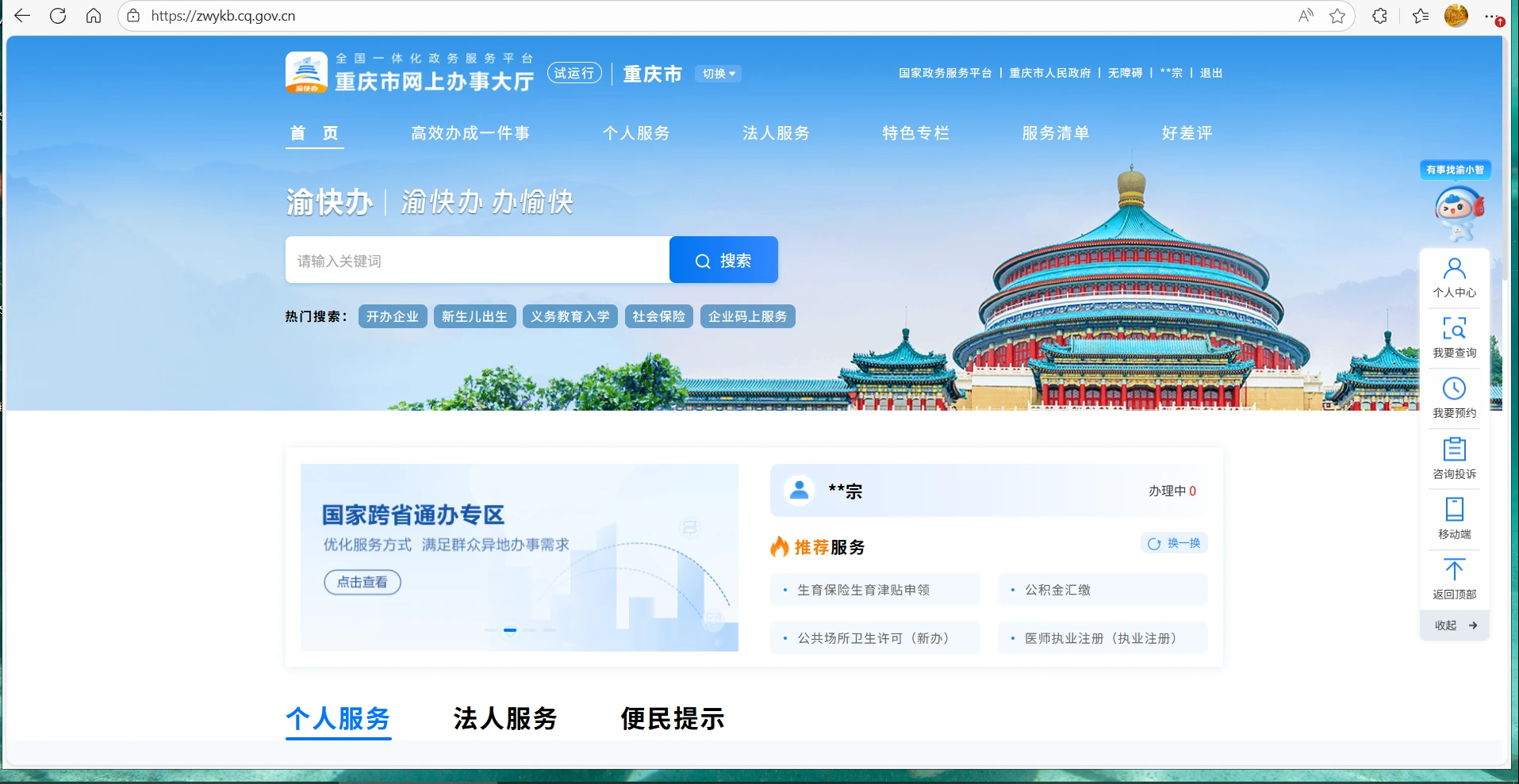 第一步:电脑打开重庆渝快办或者手机下载渝快办并登录上自己的账号