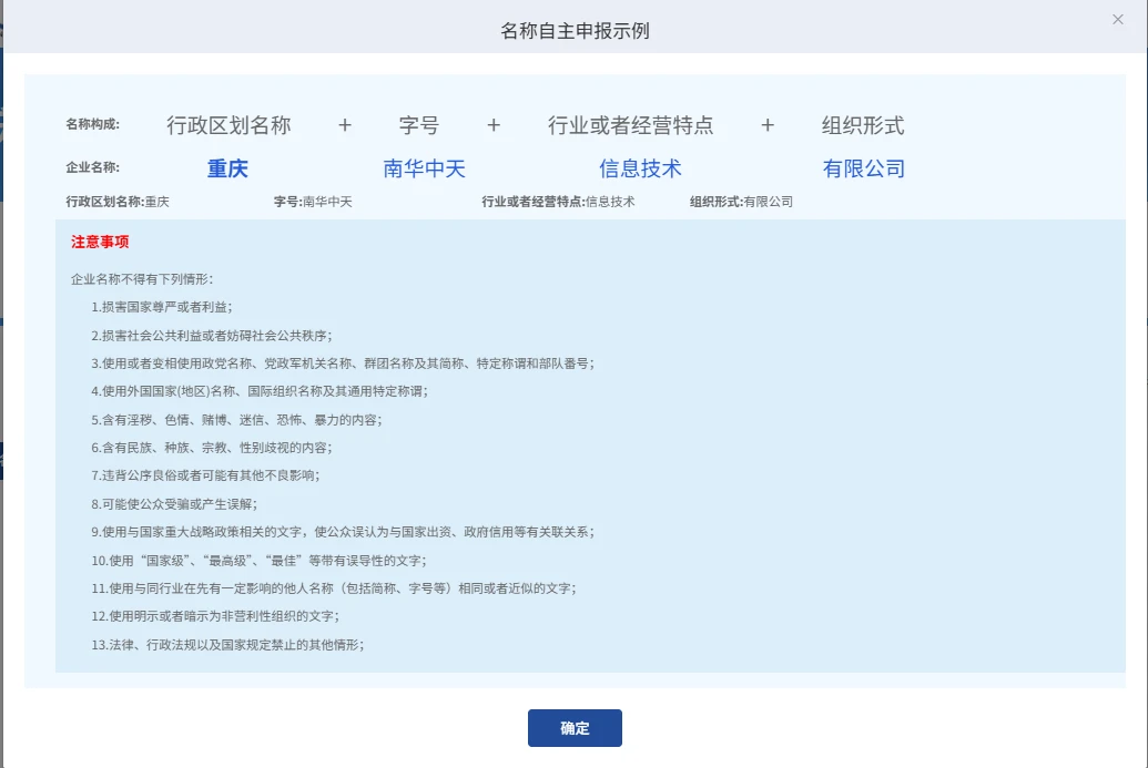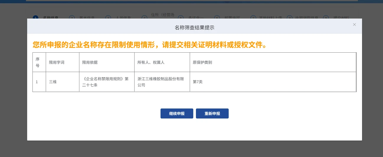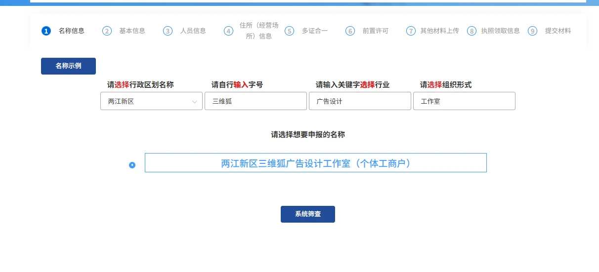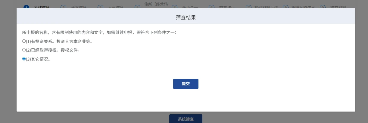 第十步:如果名称没有问题就会直接通过,有问题的就会让你提交证明材料。