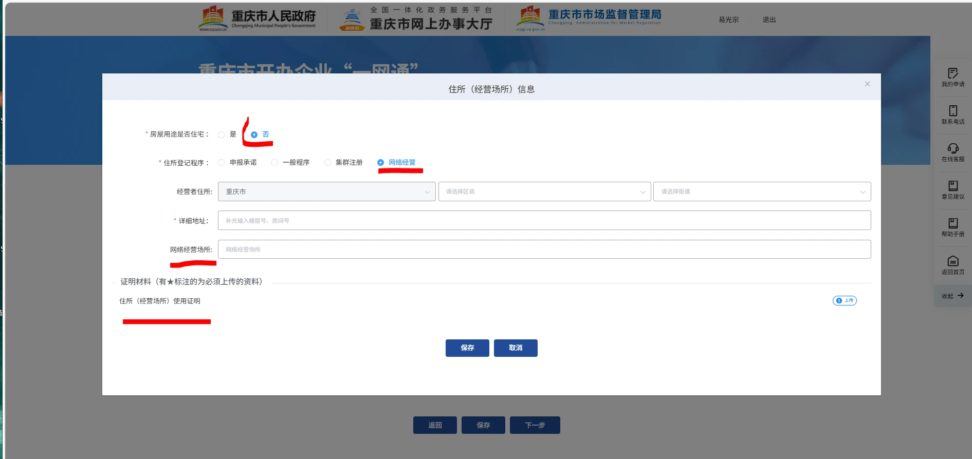 第十六步:经营场所信息很重要!我们选择网络经营,但是网络经营需要你开下淘宝店,现在开淘宝店很简单。然后去淘宝店去下载一个开店证明提交上去即可!