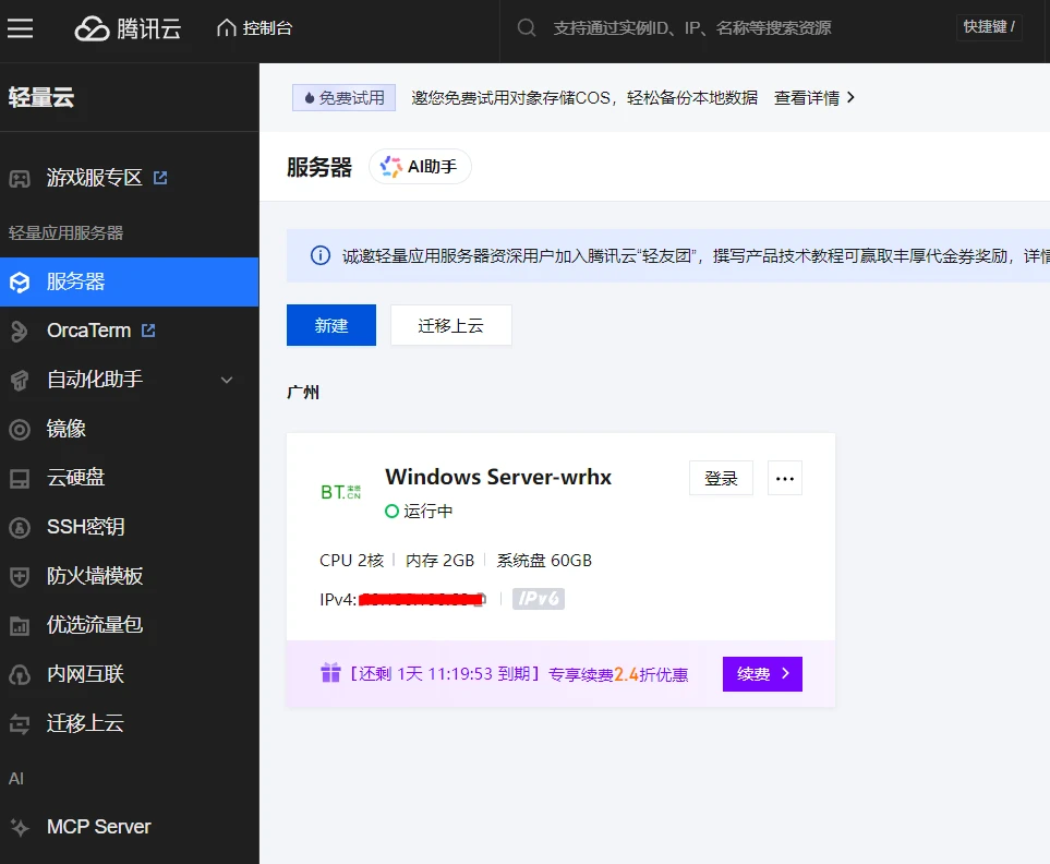 我部署的业务网站服务器明天就要到期了,今天一来上班的第一件事情就是赶快去腾讯云买一台服务器,买了一台99元的轻量云服务器。