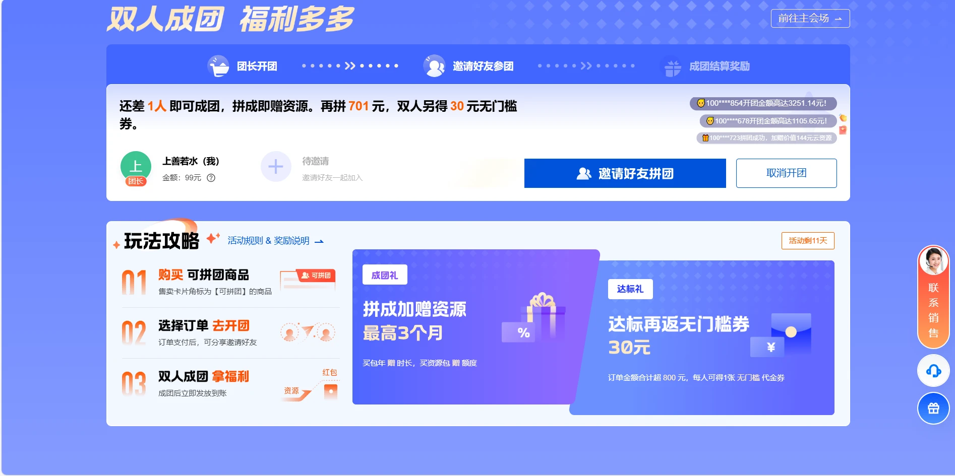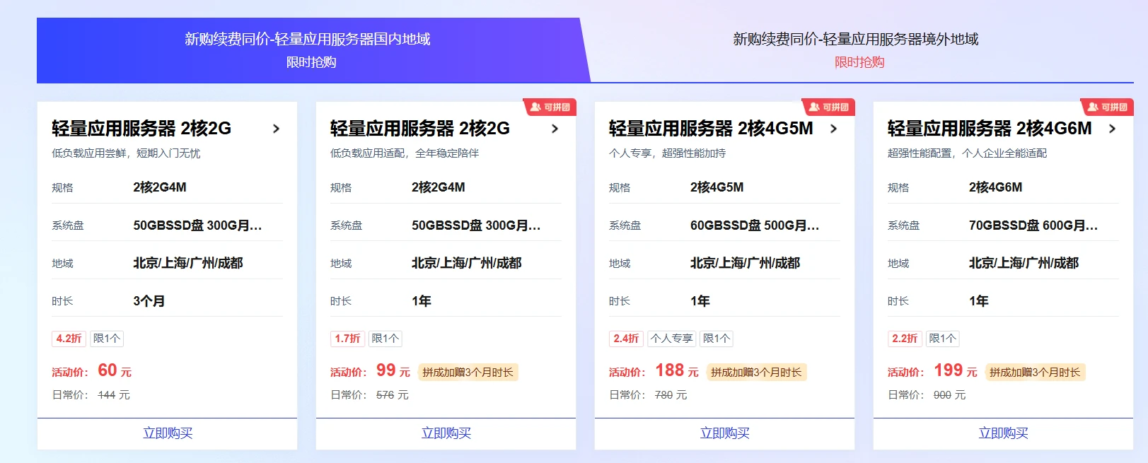 拼团成功后送了三个月的使用时间相当于99买15个月,顺手花了1块钱买了50的COS对象存储,方便我备份数据。