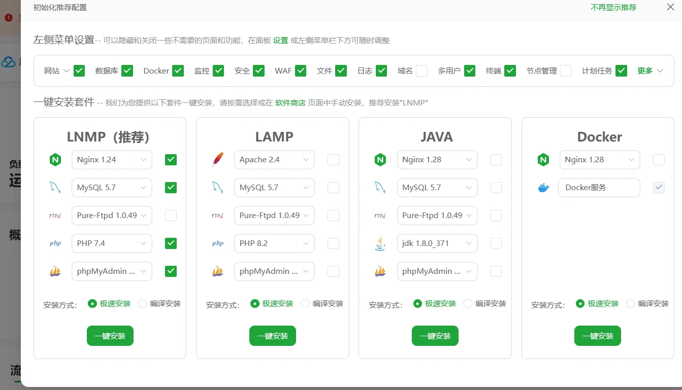 新服务器这边就把版本一一对应,然后大家记得极速安装。配置较低的就不建议编译安装了,会出现一些问题。
