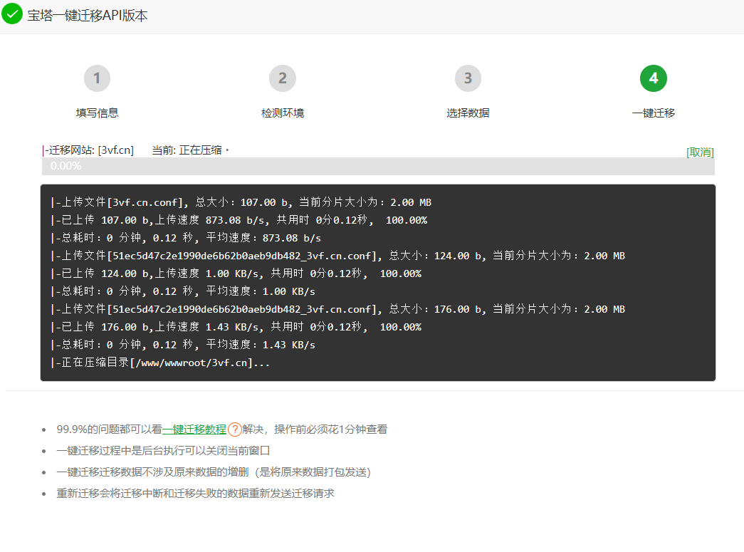 慢慢的等待它迁移完!就可以了。把域名的解析到新服务器即可!谢谢你的观看,到此文章就结束了!点个赞赞吧!