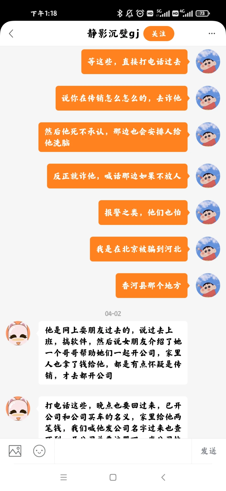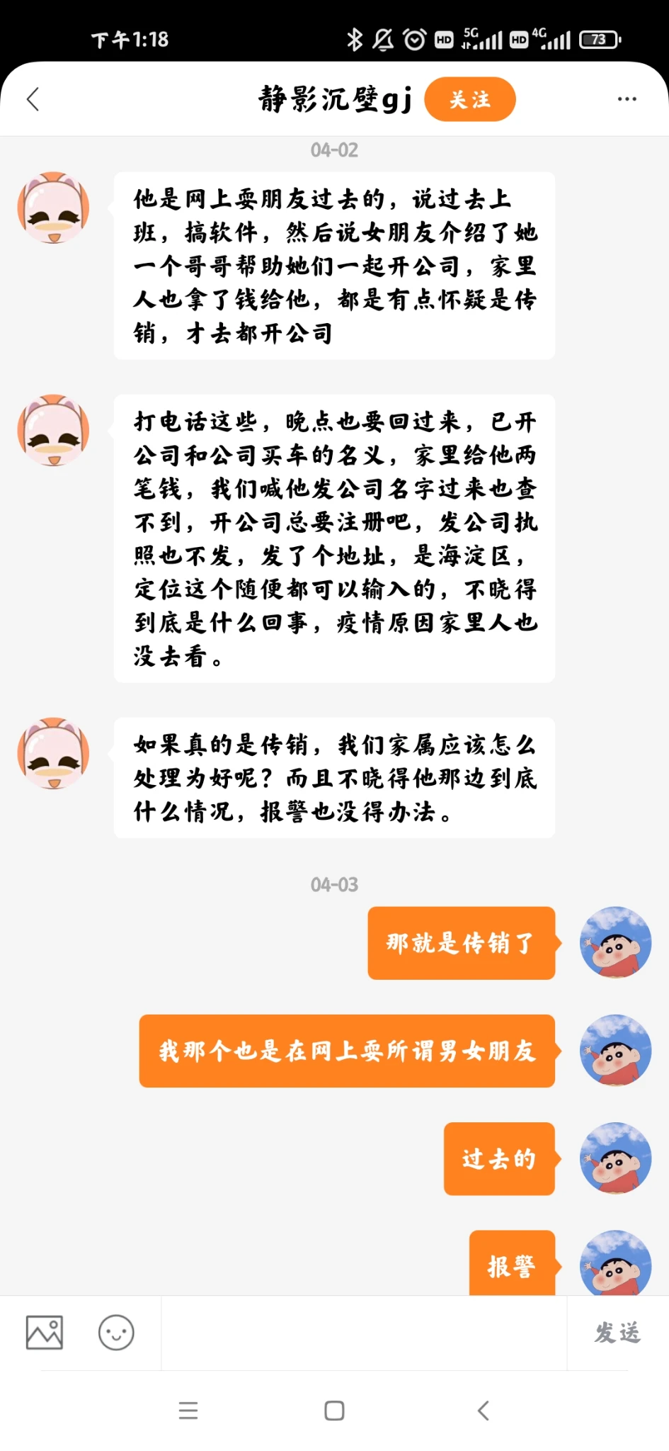 现在看来当初她们那是去上厕所罗,是去给那边传销头头通风报信去了,操蛋。然后她们回来之后,饭也上来了在吃饭期间这个女的给那边头头打了电话她喊的姐我以为真的是她姐,在我面前说姐啊,不好意思麻烦姐给我们找房子啊,我男朋友就在旁边然后把手机递给我。我哈戳戳的接过手机也喊姐,那边就说你是萍的男友啊,我听她说你很优秀怎么怎么滴然后说我等下出去买鱼给你做巫山纸包鱼哈,我说麻烦姐了哈,她说都是一家人客气啥。然后就挂了。
