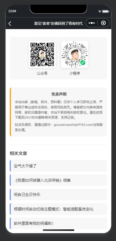 如果大家也想需要这个小程序的话,在文章后面有部署教程和源码下载,部署后方便朋友微信直接访问博客!