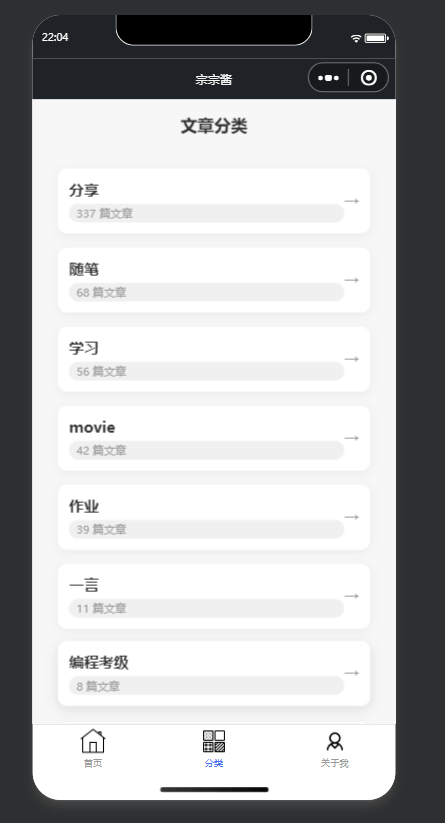 点击分类进入对应分类的文章列表。