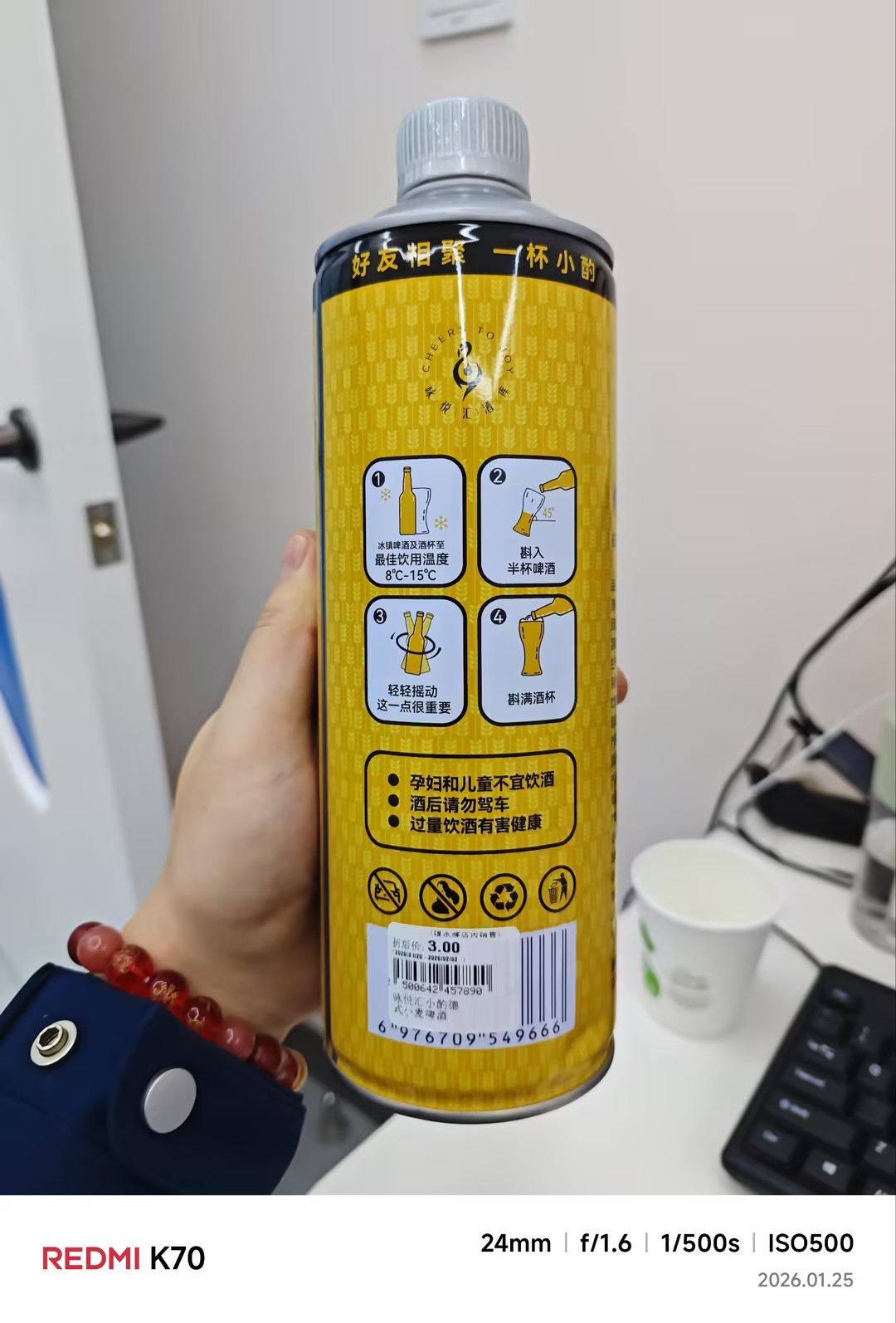 今天本来是想去买点吃的,从一点上课到六点,肚子有点饿了。结果在临期商品区,一眼瞥见了啤酒——一升装,只要三块钱!在淘宝上都还要十块钱一瓶!