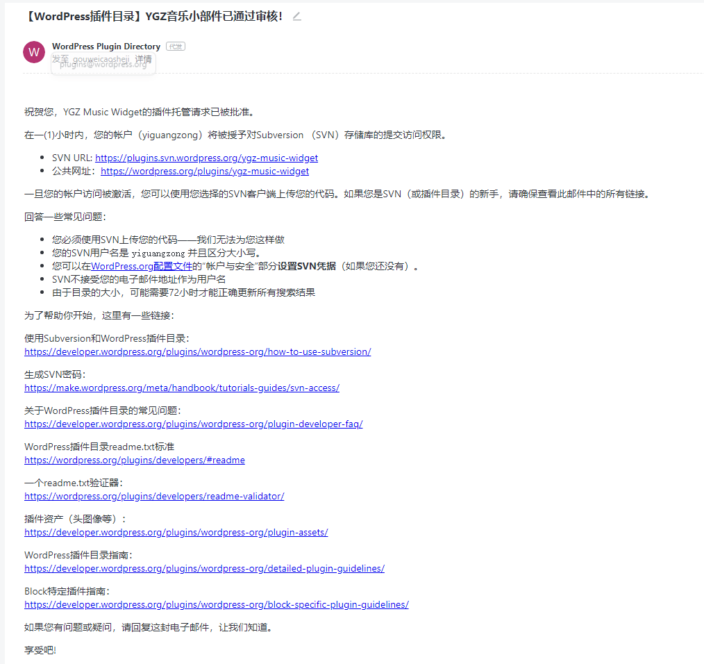 激动啊,这个插件被打回来了几次,这次终于通过了!!!然后下班马不停蹄的到家把电脑打开通过SVN把插件上传上去。这里面有学到了一个SVN的工具使用,捣鼓了一下,最终成功上传文件。