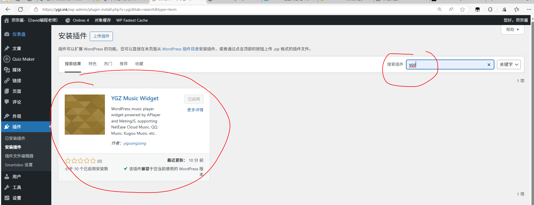 然后我立马跑到网站插件页面搜索“YGZ”终于出来了,欢迎大家下载体验!