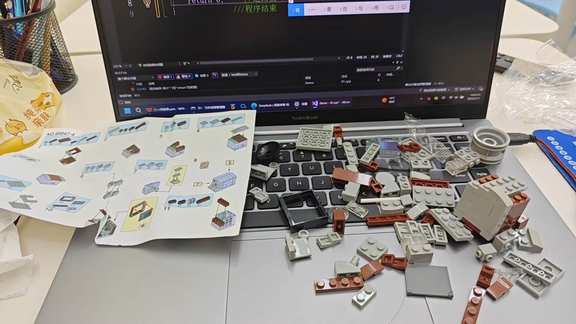 今天我没课,自己找了个空教室,关上门背对摄像头,把积木倒出来,一步步照着图纸搭成了一台相机。整个过程还挺有意思的。国产积木的质感确实不如乐高,拼合起来缝隙有点大,不如乐高衔接得那么紧密。