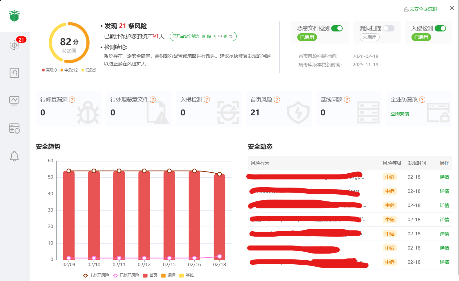 宝塔的安全检测模块里面一直在提示问题,虽然也不用管它看到红色的提示就很碍眼。然后就配合deepseek来进行问题一个个修复问题,从最开始的50多个问题修复到现在的20多个问题。慢慢修复,用它的专业版要钱,用免费的AI来配合修复还挺不错的。