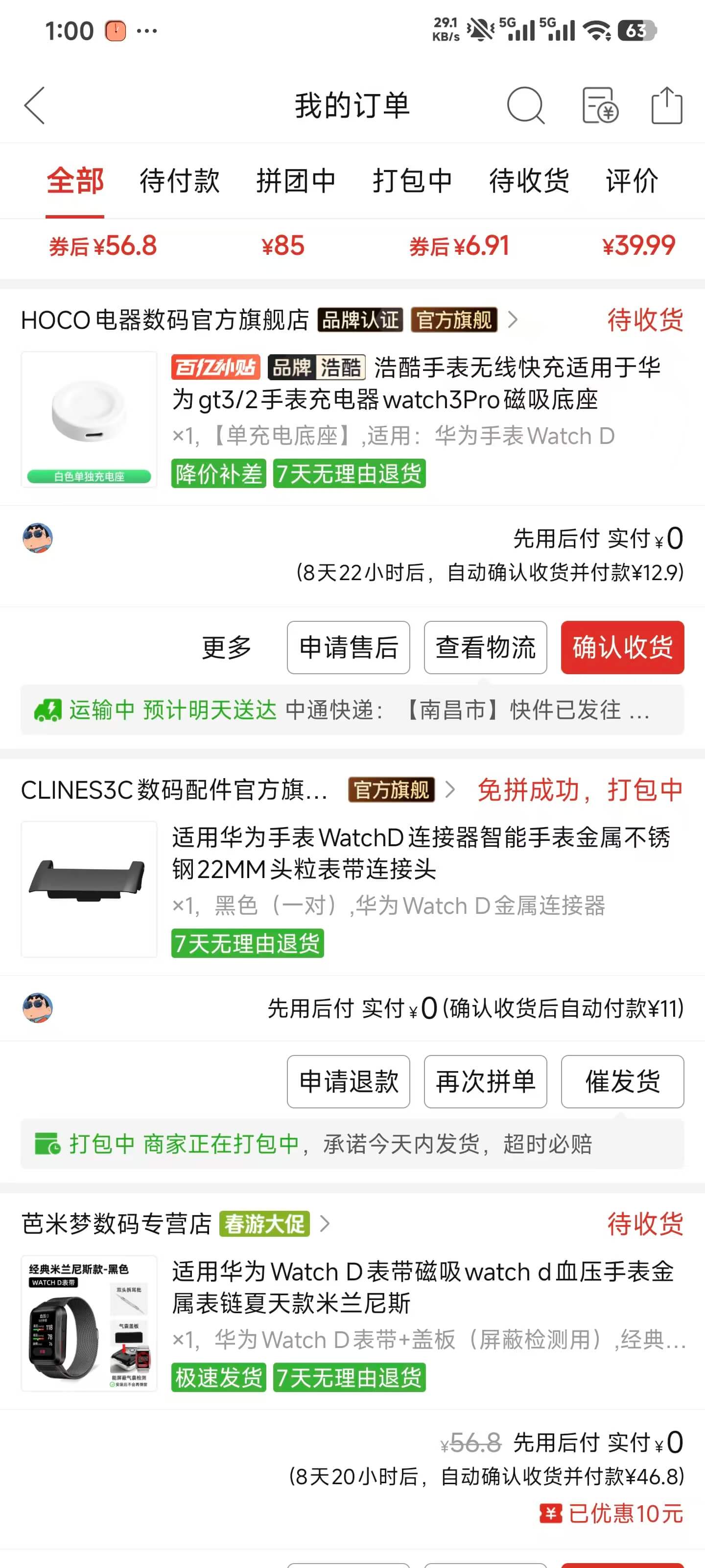 我目前戴的是小米手环9Pro,手环只能做基础的健康检测。看到张雪峰老师的事情后就想买块可以测量血压、心电图的这类手表。目前做的比较好的就是华为的Watch D和目前最新一款Watch D2。然后我之前不是一直在写公众号攒钱,目前靠公众号的收入已经攒到了700多左右。然后上周星期四去学校上课的时候途中看到有个二手摊摊在卖一些老旧物品,刚好看到摊摊中就有一块华为Watch D静静的躺在那里。我心里一阵激动啊然后和摊主降价到40拿下。然后买到手后回家就用酒精清洗了一番。心里也拿不定主意这个表是不是好的。就想着说如果是好的就自己买表带自己带,坏的就放到咸鱼上卖掉当配件。反正这个生意是不会亏的。就没有着急忙慌去买充电器那些。想着星期五反正不上课就到时候下班去华为体验店去借用他们的充电器来试下。星期五下班后就跑到协信广场里面去让工作人员试了下,一放到上面就开机显示华为了,一看到这个心里就稳了捡漏捡成功了。回家就立马下单了表带和充电器。
