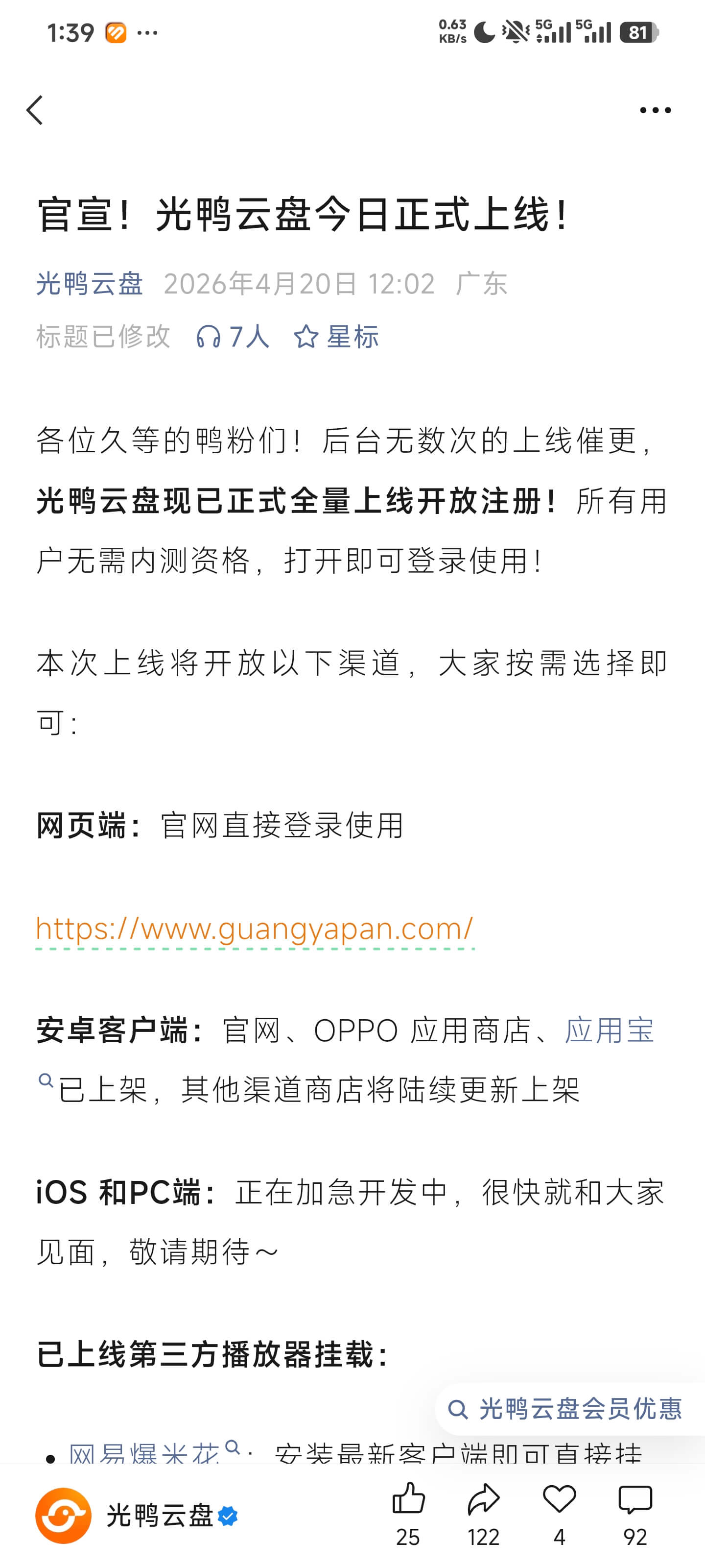 光鸭云盘是迅雷旗下的,今天开放注册登录就送2TB。诚意不错。大家可以试试,我注册了两个账号😂 免责声明本站内容(教程、软件、资料等)仅供个人学习研究之用,严禁用于商业或非法目的,使用风险自负。博客部分内容来源自网络,版权归属原作者,本站不承担相关版权责任。请在试用下载后24小时内删除相关资源,支持正版。如涉及侵权,请通过邮件:gouweicaosheji#163.com与我联系处理。