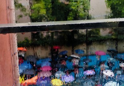 重庆这几天全在下雨。昨天下了一整天的雨并且雨还不小。然后我上课的时候看见外面的家长在外面撑着伞接学生放学,看着这一幕马上就抓拍下来了。挺有油画的感觉。天然的滤镜!