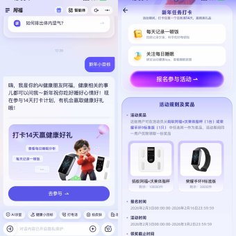 蚂蚁阿福APP发送“新年小目标”->报名后连续14天打卡,领10万份体脂秤或3.8万份荣耀手环9 这个蚂蚁阿福作为医疗健康类APP我平时也经常使用,推荐大…